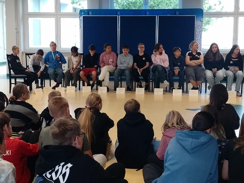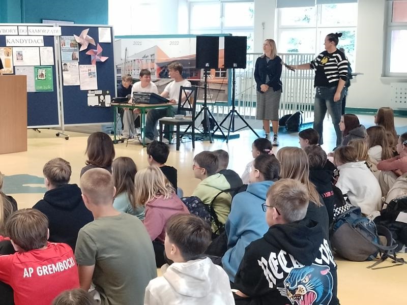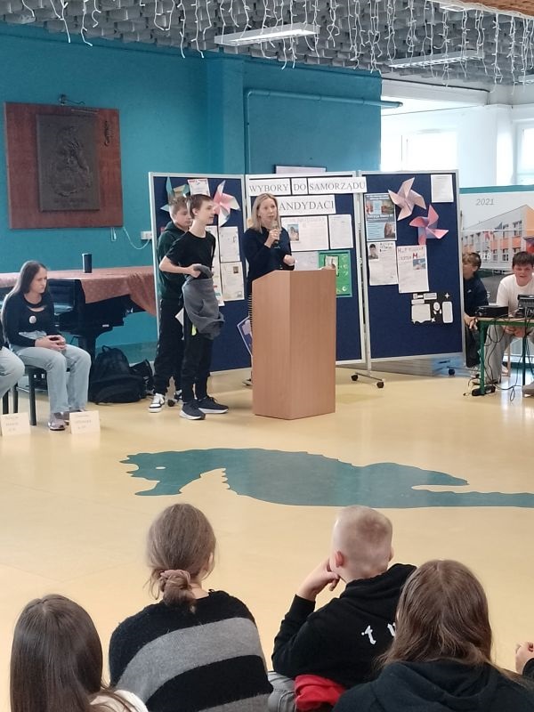 W środę, 24 września, podczas 4. lekcji odbyła się debata kandydatów do Samorządu Uczniowskiego. W wydarzeniu - oprócz kandydatów - wzięli udział przedstawiciele poszczególnych klas. Podczas debaty mieliśmy okazję poznać postulaty kandydatów, a następnie posłuchać odpowiedzi na pytania przygotowane przez społeczności klasowe. Spotkanie przebiegło w atmosferze zaangażowania i wzajemnego szacunku, a przedstawione pomysły pokazały, jak wiele energii i kreatywności drzemie w naszych uczniach.