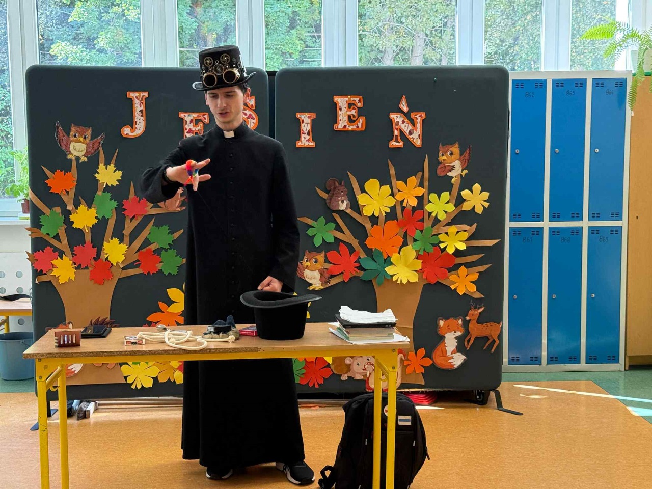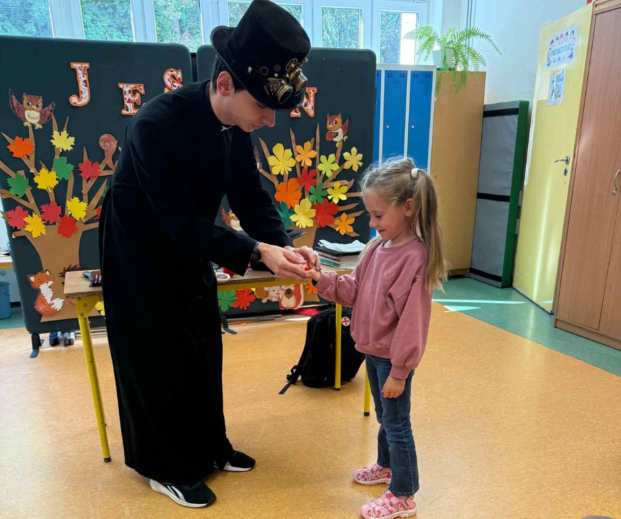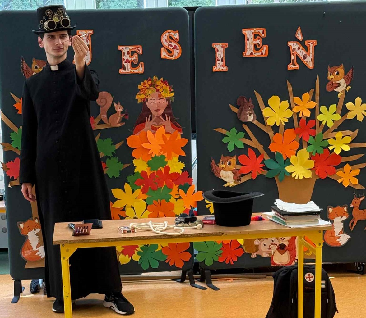 naszej szkoły - ks. Bartosz. Dzieci mogły zobaczyć wiele sztuczek ze sznurkami, kartami, piłeczkami i