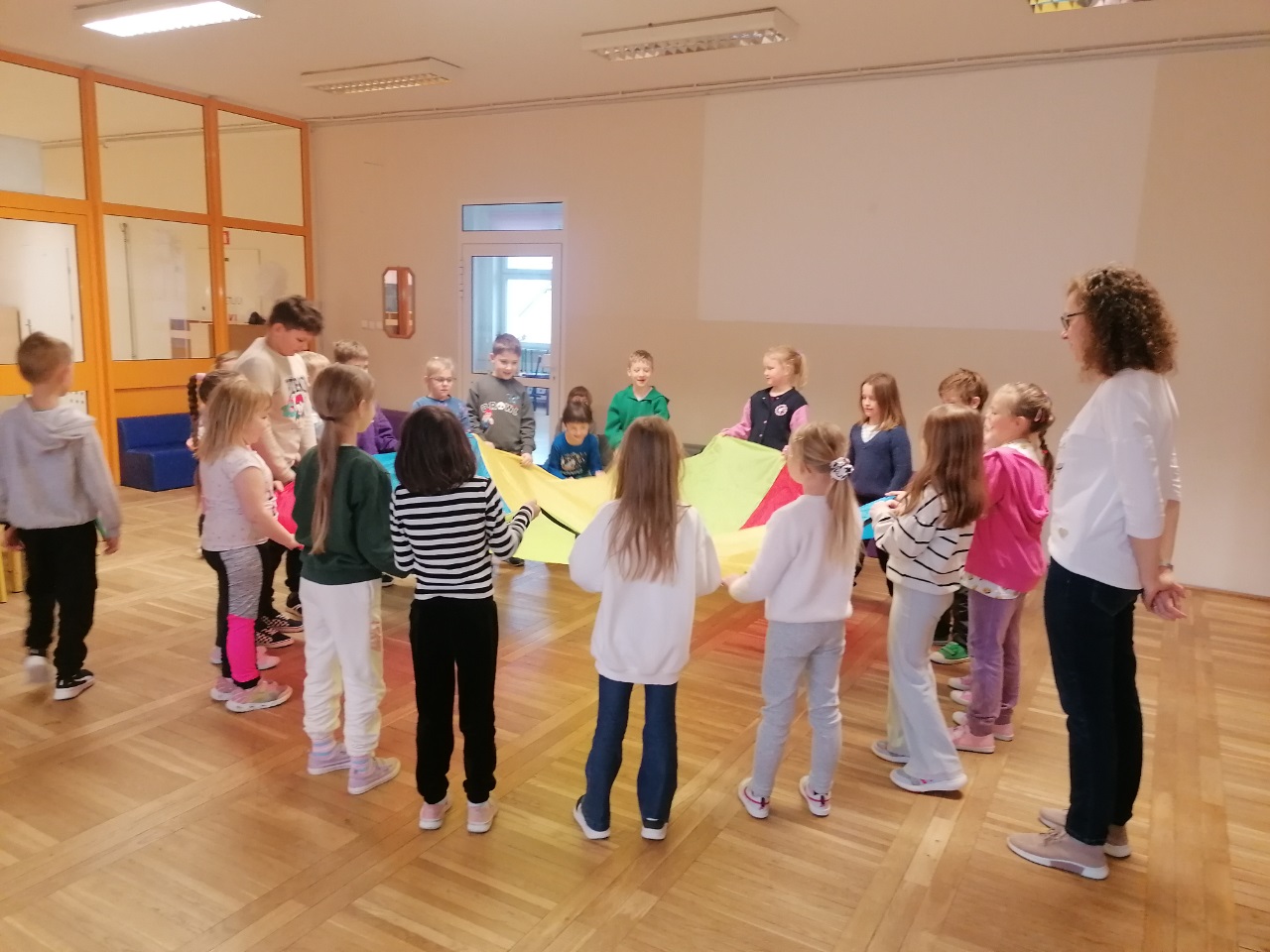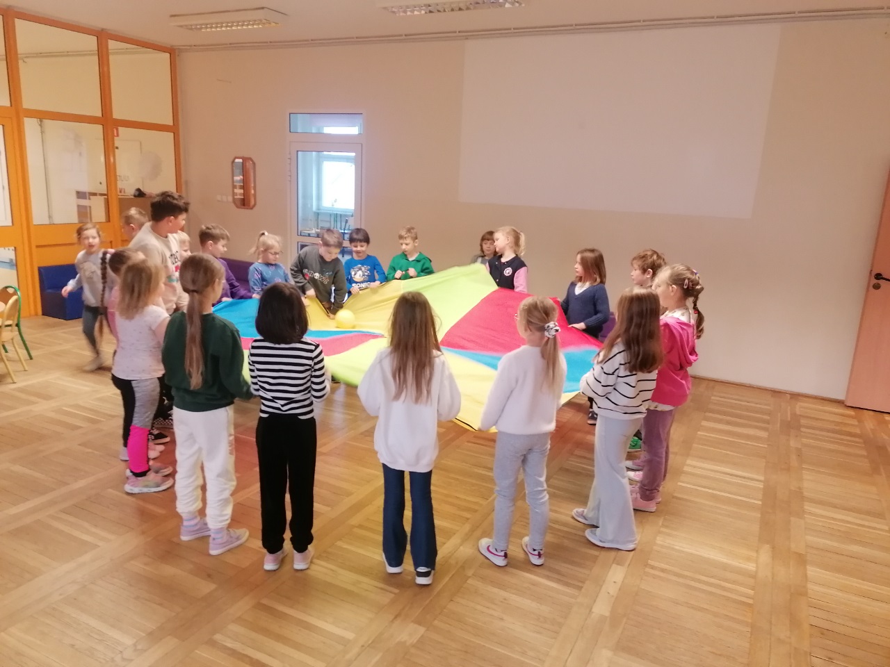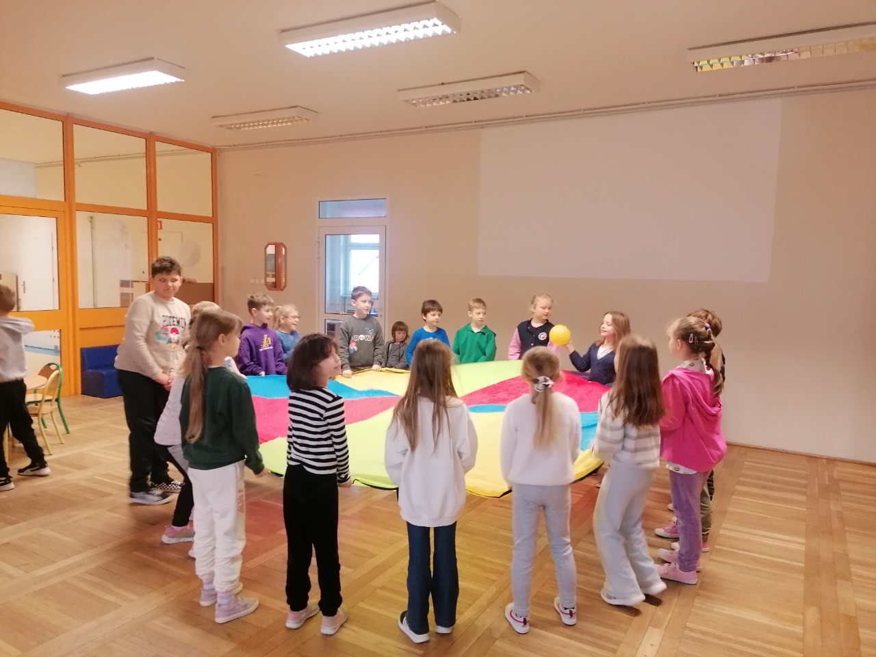 W świetlicy przygotowania do wiosny na całego! Nasze dzieciaki wykazują się ogromną pracowitością i zaangażowaniem. A w nagrodę jedna z ulubionych aktywności ruchowych-zabawy z chustą animacyjną.