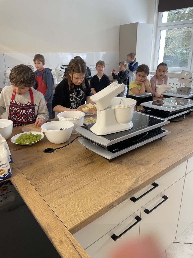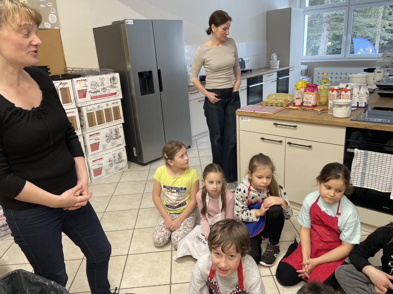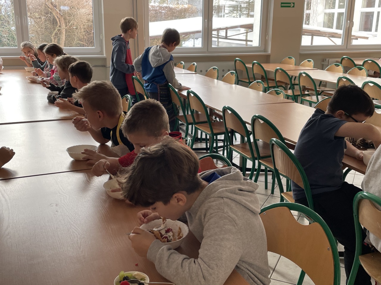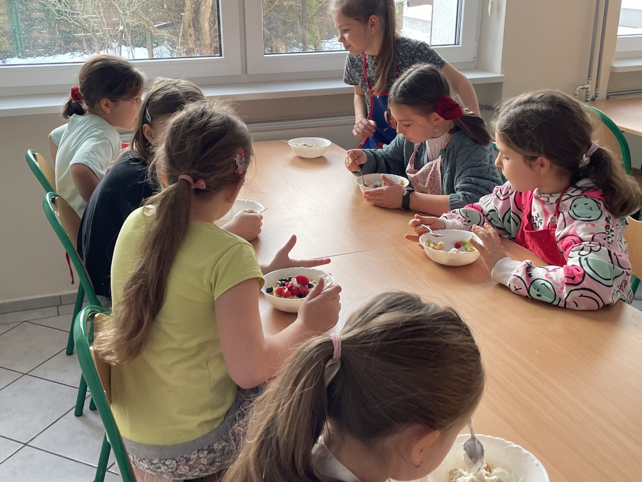 Dziś w ramach innowacji pedagogicznej „Radość czytania i gotowania” uczniowie klasy 2c wysłuchali fragmentu książki Grzegorza Kasdepke „Bon czy ton. Savoir-vivre dla dzieci” dotyczącego właściwego zachowania przy stole oraz zasad higieny podczas przygotowywania posiłków.