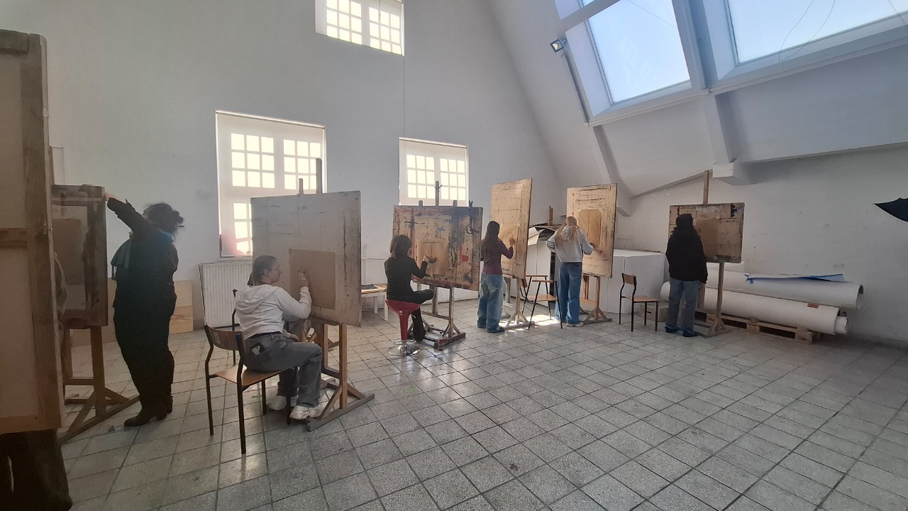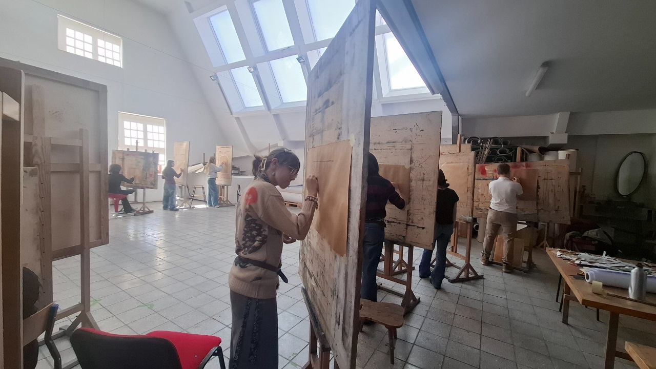 Szczególnym przeżyciem dla młodzieży były zajęcia w pracowni rysunku. Uczniowie mieli możliwość pracy na profesjonalnych sztalugach, rysując bardzo ciekawą martwą naturę ze szkieletem. Pod czujnym okiem Pani Profesor każdy z uczestników otrzymał indywidualną, profesjonalną korektę swoich prac.