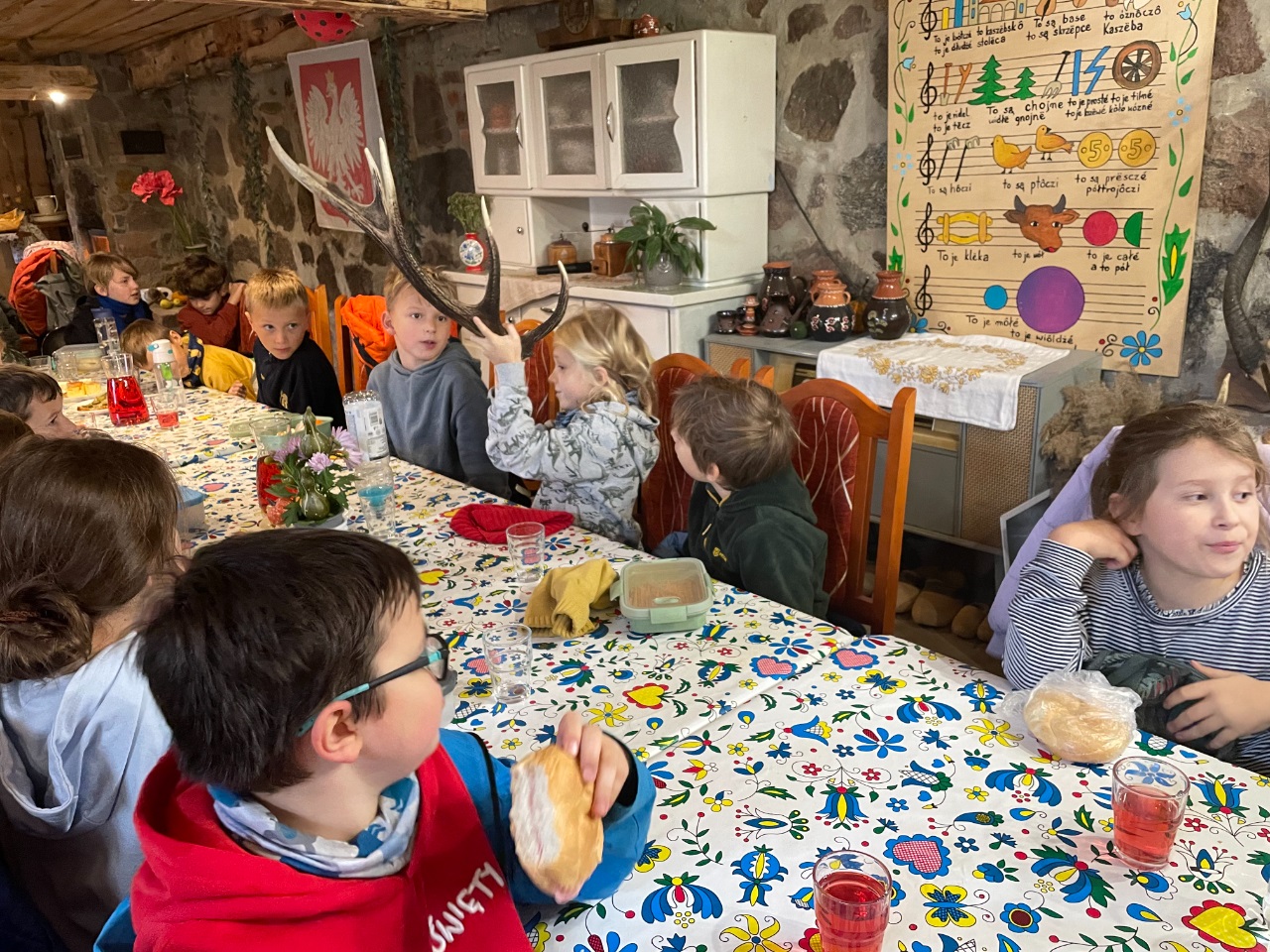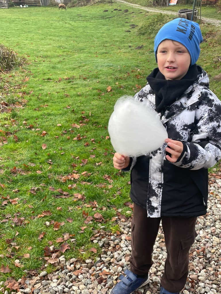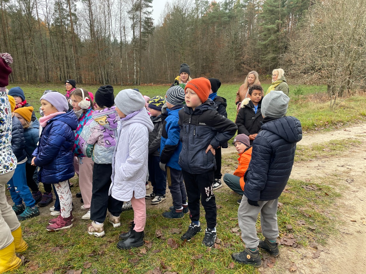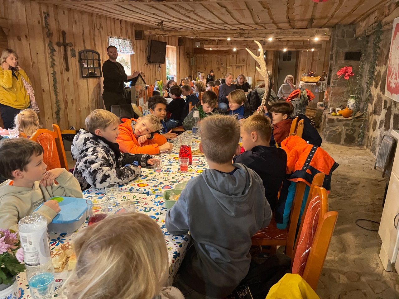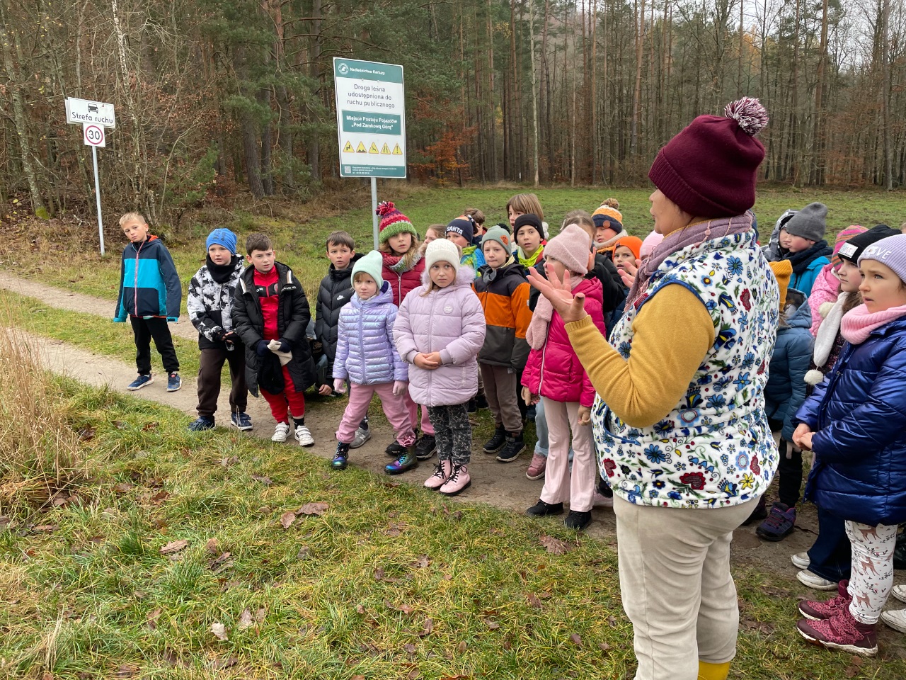 Po spacerze w lesie odbyło się spotkanie z panem leśnikiem, który opowiadał o zwierzętach i roślinach oraz o zasadach bezpiecznego zachowania w lesie. Nie zabrakło też słodkich i swojskich przysmaków – była wata cukrowa, pyszna pomidorowa zupka, domowa drożdżówka oraz swojski chleb ze smalcem - kaszubską nutellą.