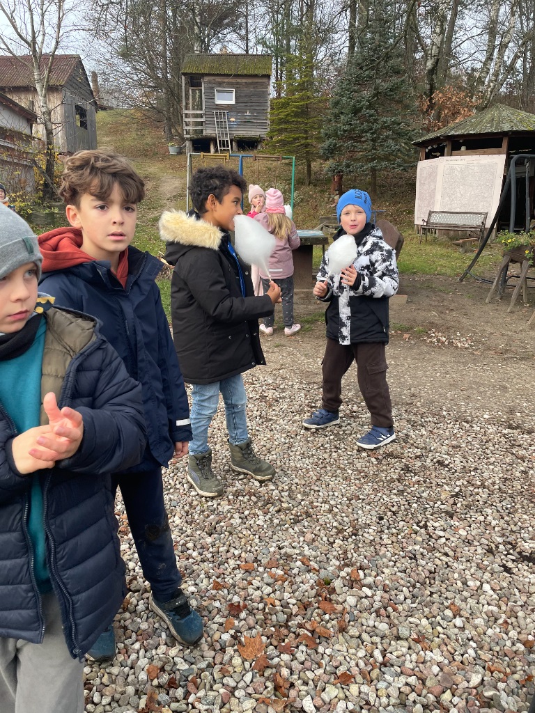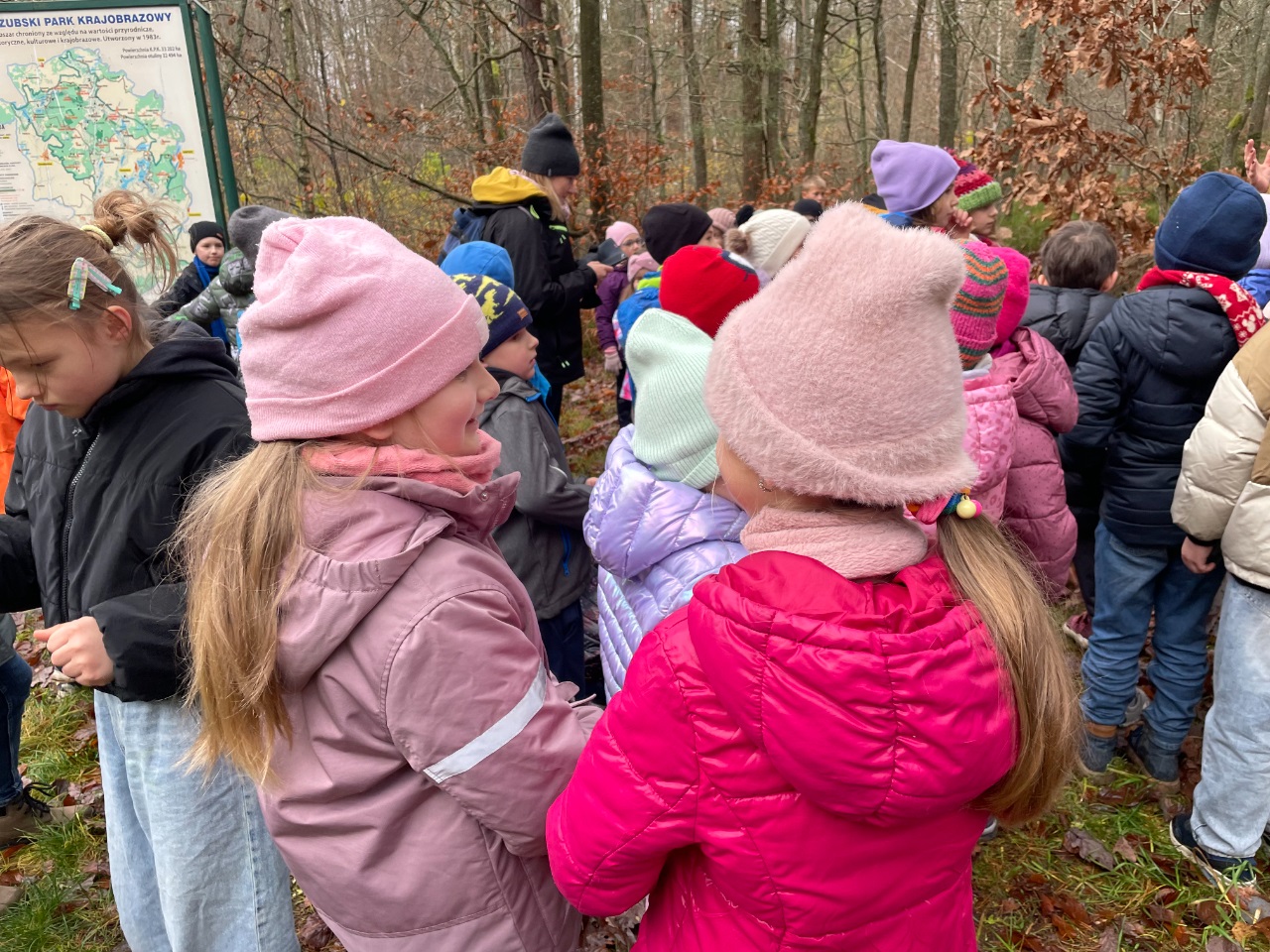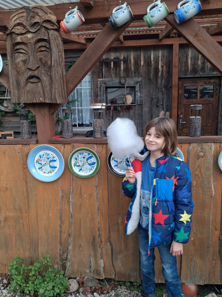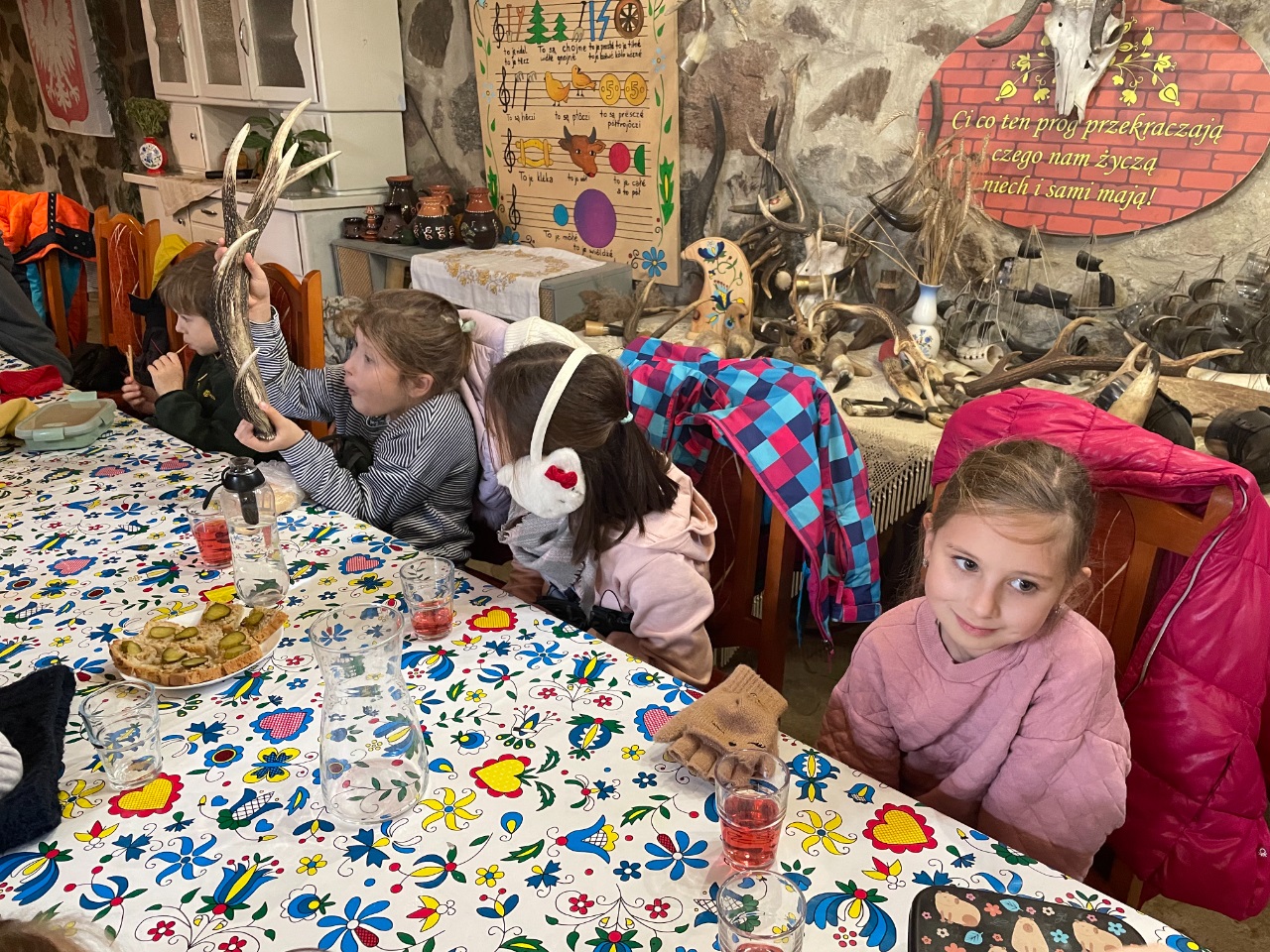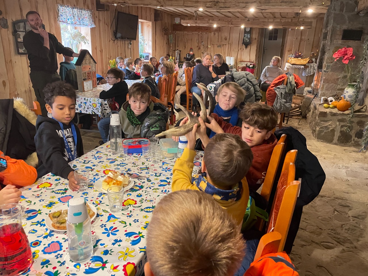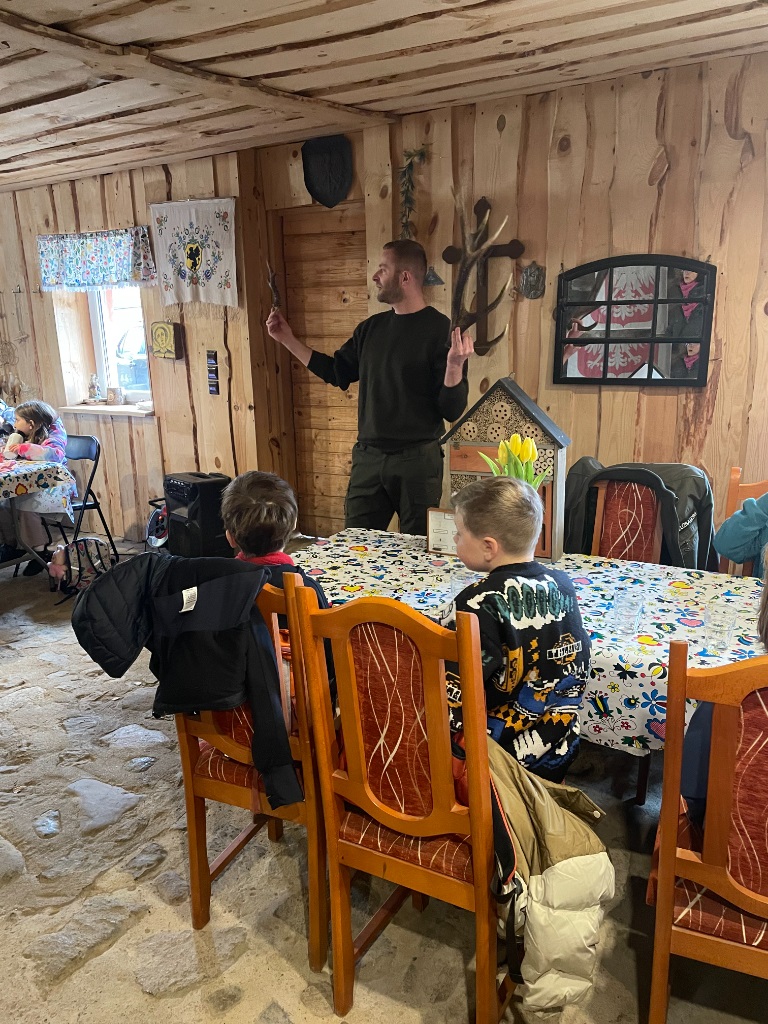 Po spacerze w lesie odbyło się spotkanie z panem leśnikiem, który opowiadał o zwierzętach i roślinach oraz o zasadach bezpiecznego zachowania w lesie. Nie zabrakło też słodkich i swojskich przysmaków – była wata cukrowa, pyszna pomidorowa zupka, domowa drożdżówka oraz swojski chleb ze smalcem - kaszubską nutellą.