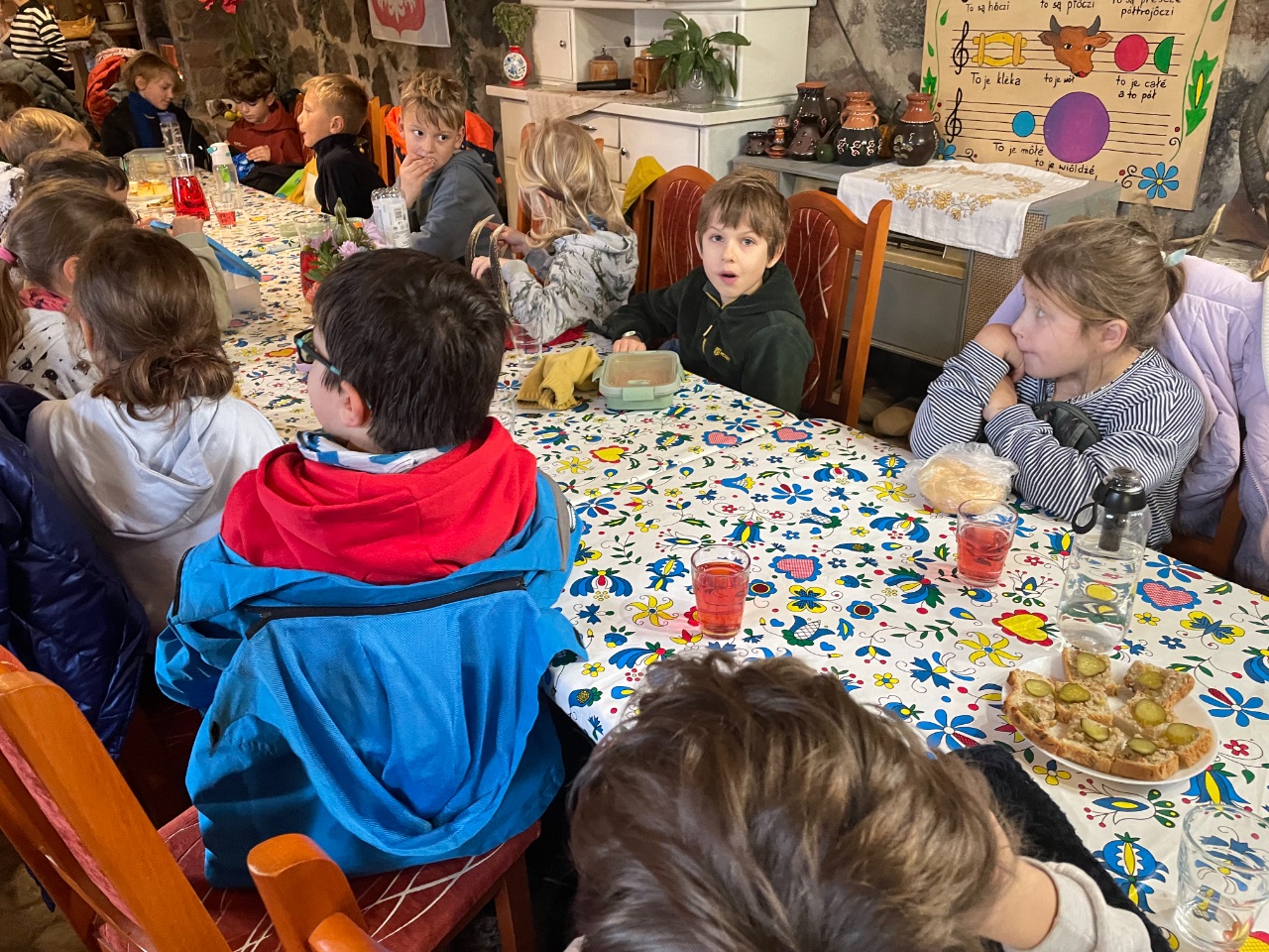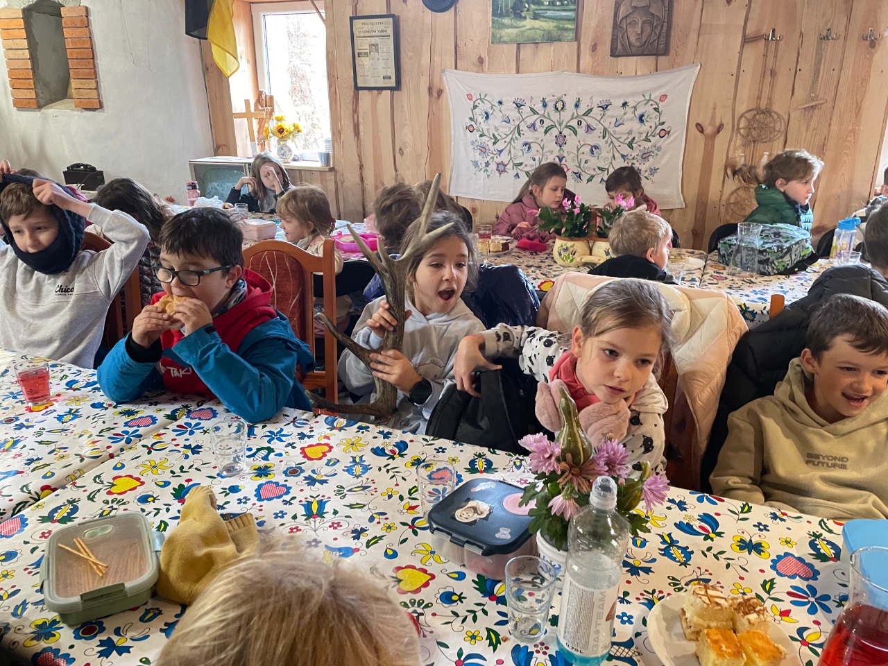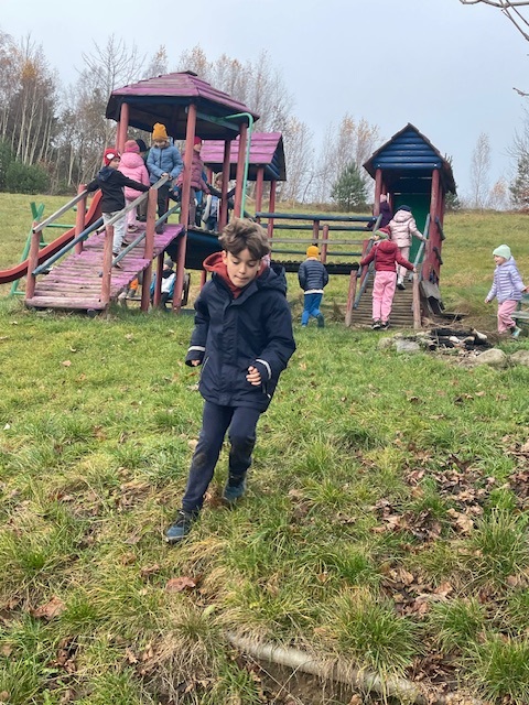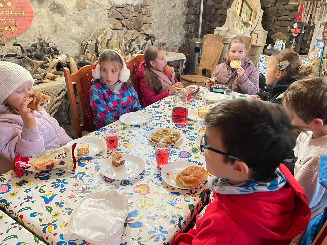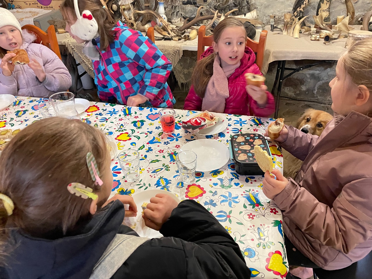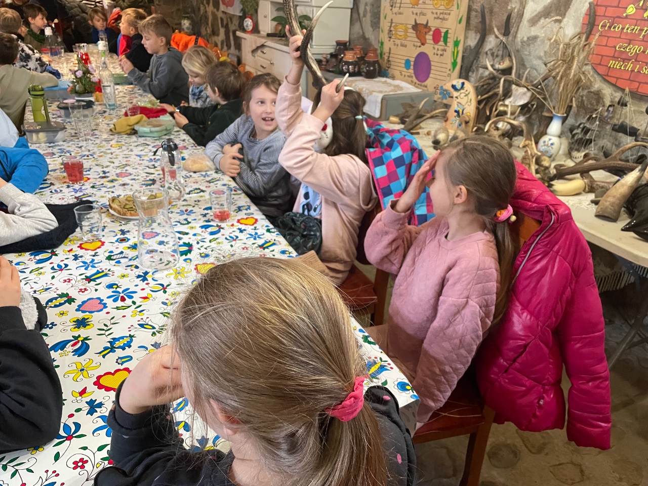 Po spacerze w lesie odbyło się spotkanie z panem leśnikiem, który opowiadał o zwierzętach i roślinach oraz o zasadach bezpiecznego zachowania w lesie. Nie zabrakło też słodkich i swojskich przysmaków – była wata cukrowa, pyszna pomidorowa zupka, domowa drożdżówka oraz swojski chleb ze smalcem - kaszubską nutellą.