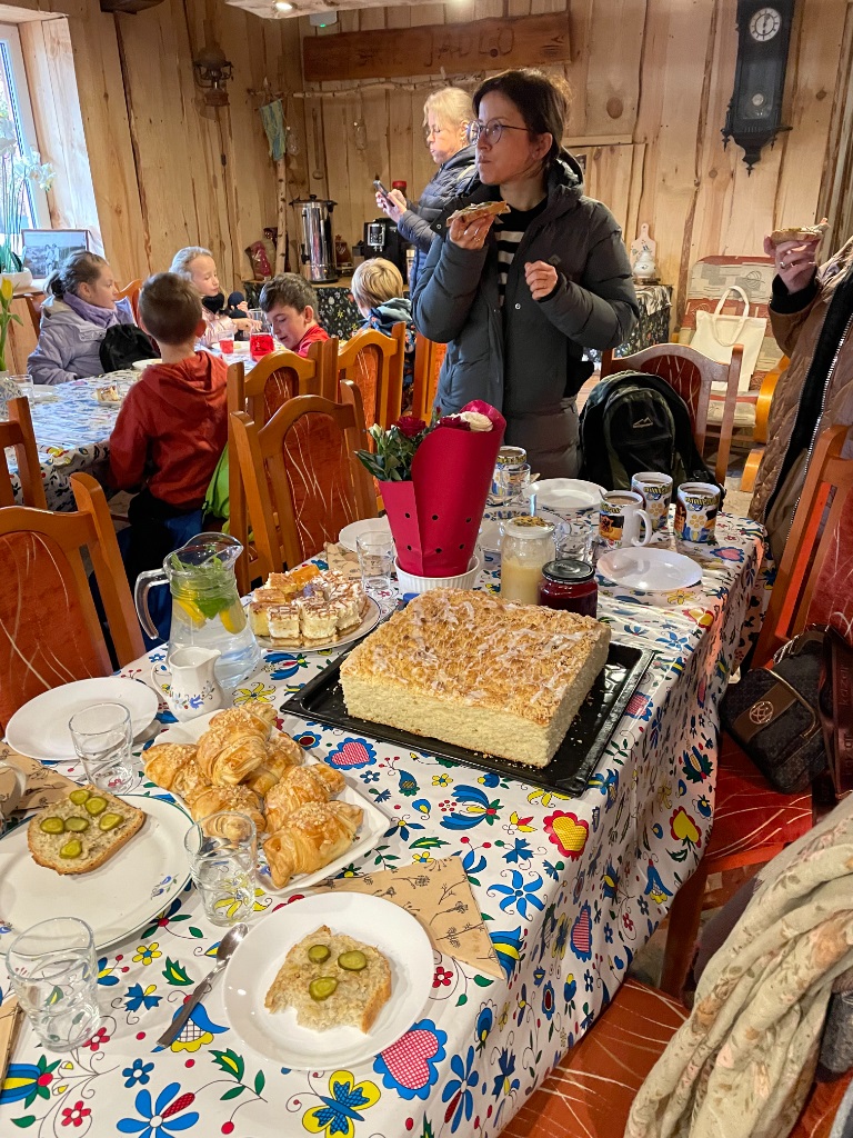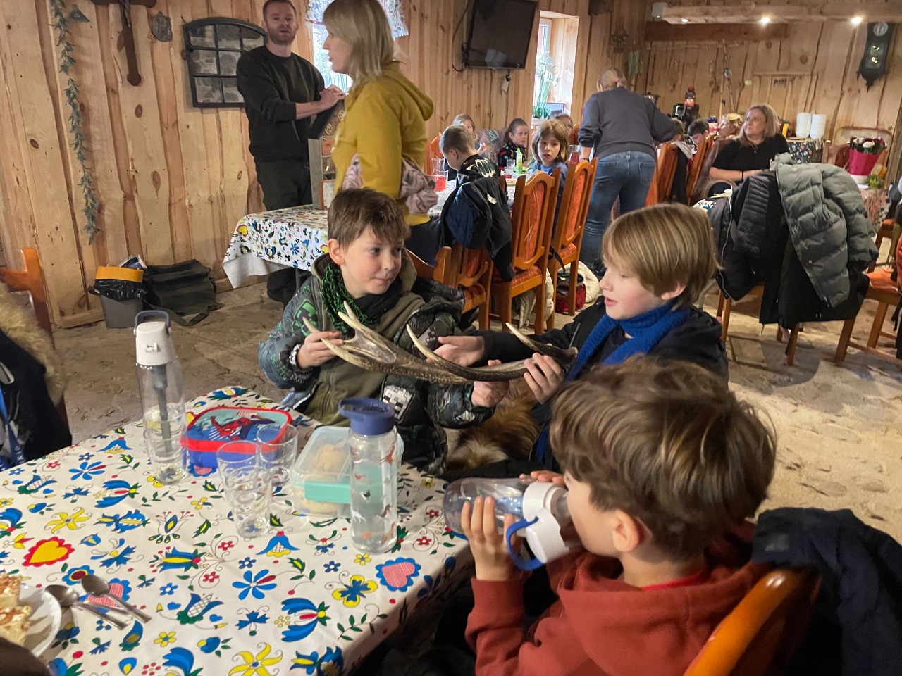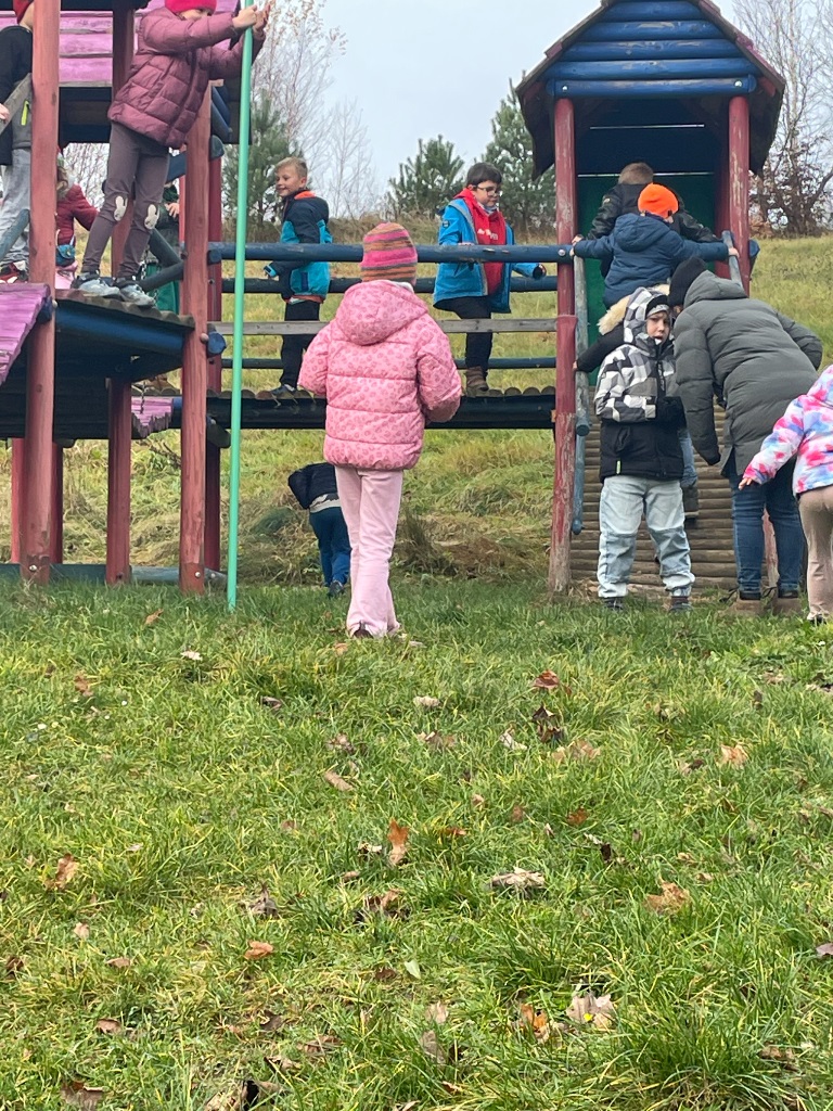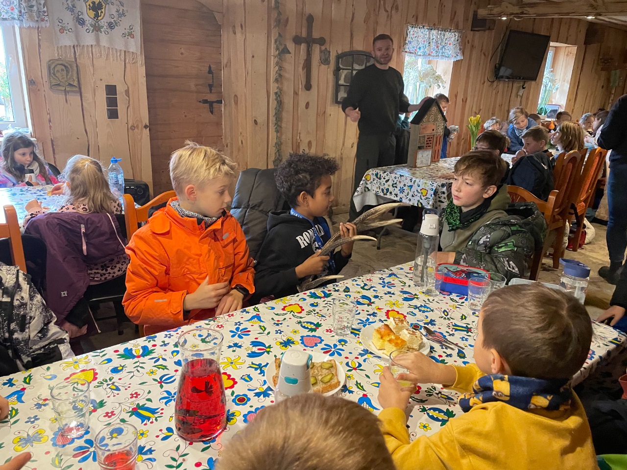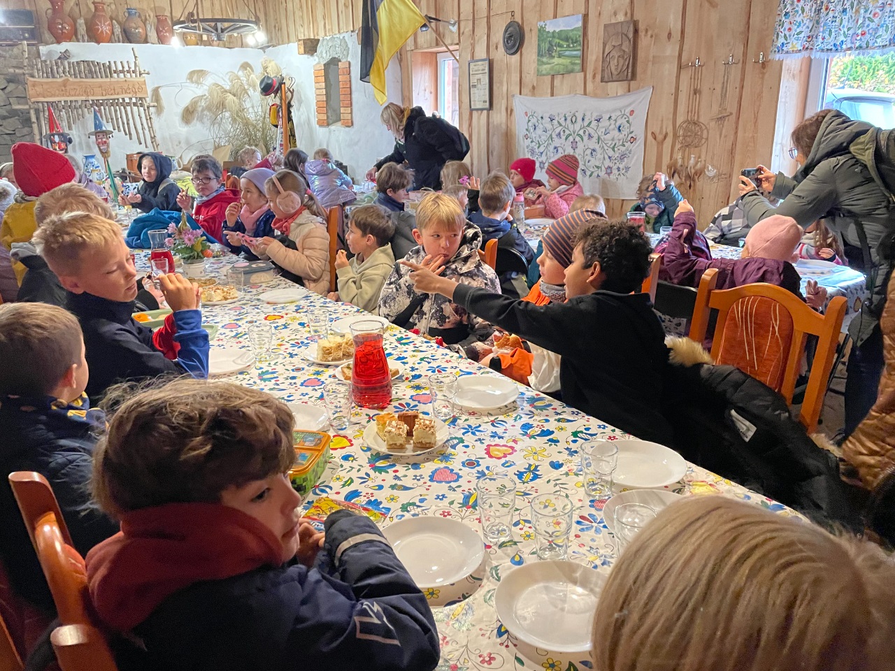 Po spacerze w lesie odbyło się spotkanie z panem leśnikiem, który opowiadał o zwierzętach i roślinach oraz o zasadach bezpiecznego zachowania w lesie. Nie zabrakło też słodkich i swojskich przysmaków – była wata cukrowa, pyszna pomidorowa zupka, domowa drożdżówka oraz swojski chleb ze smalcem - kaszubską nutellą.