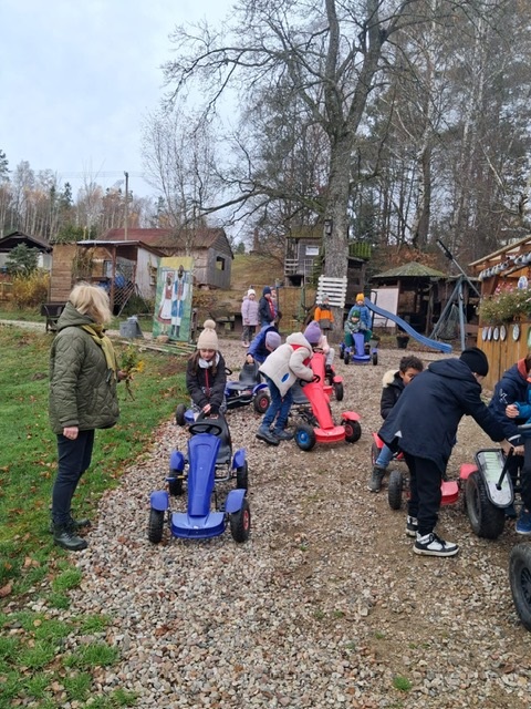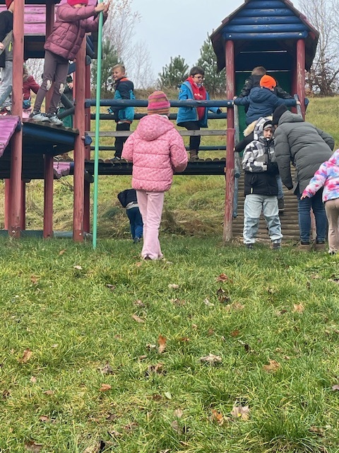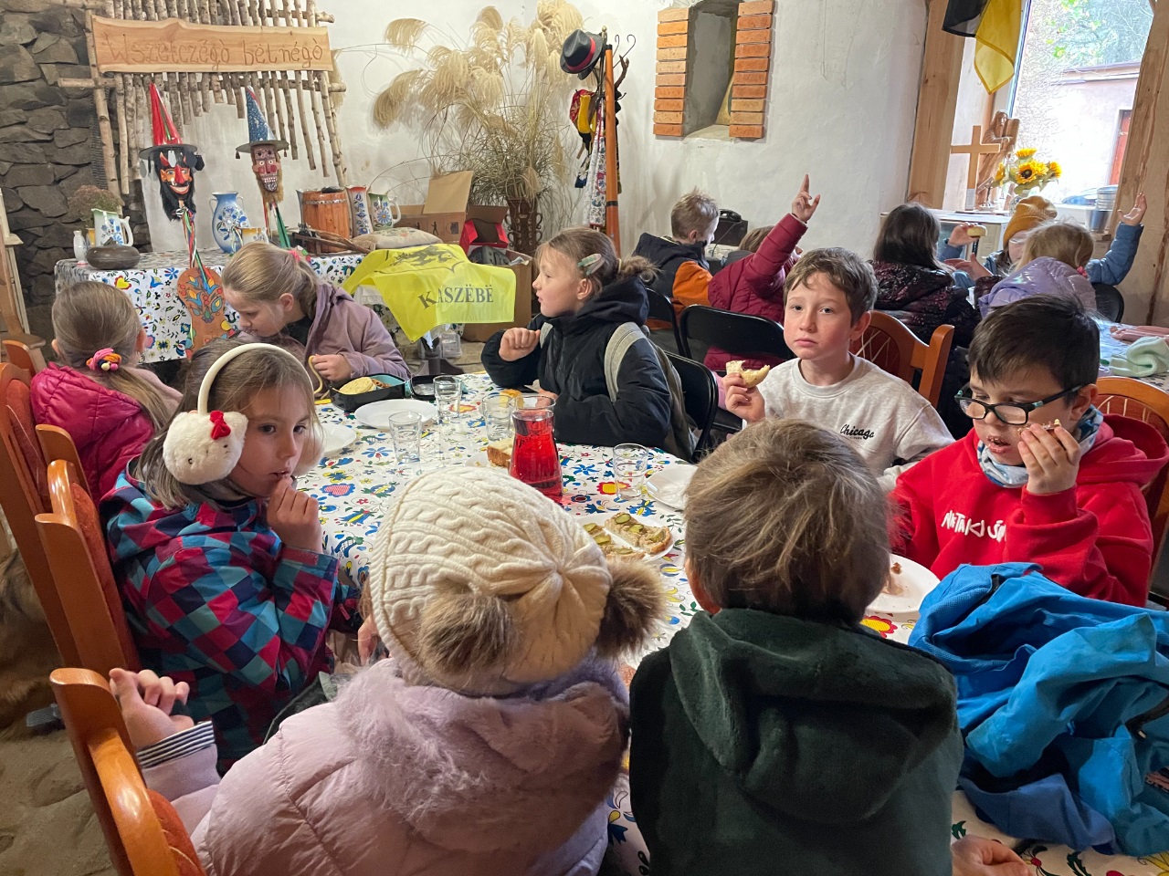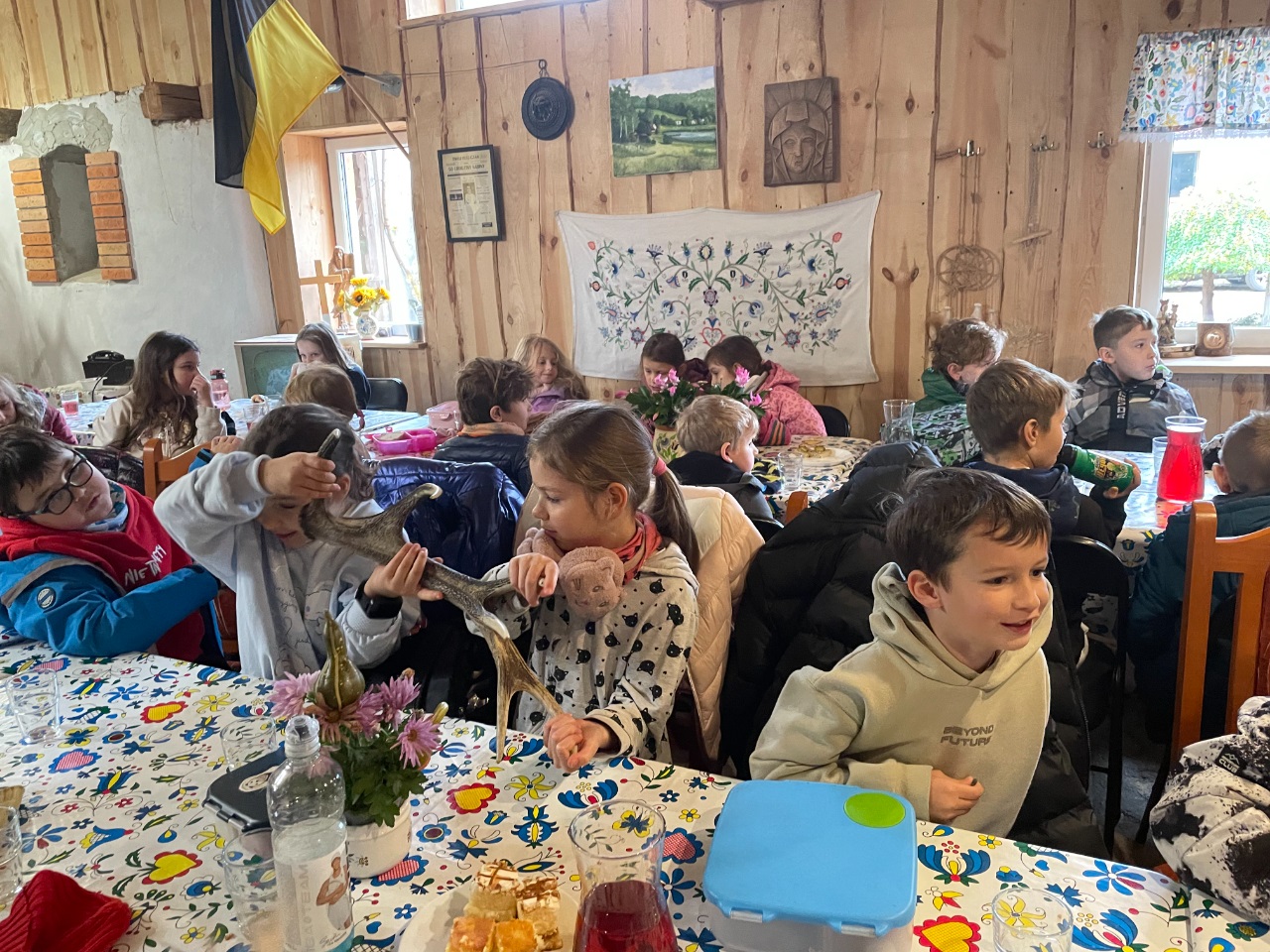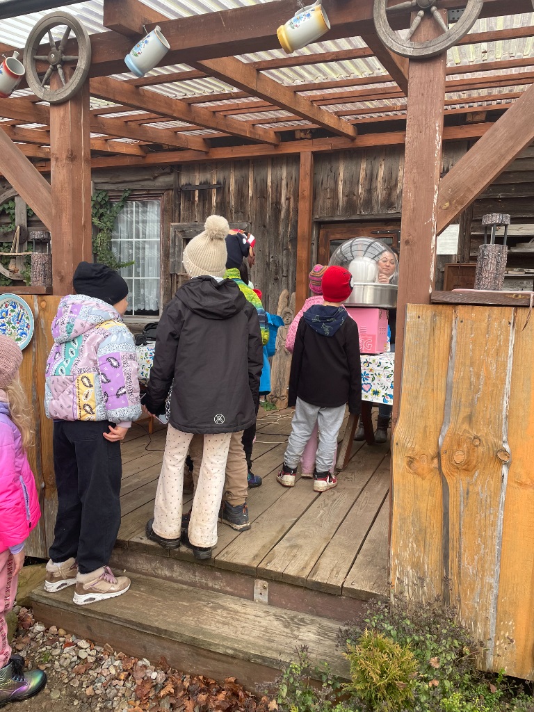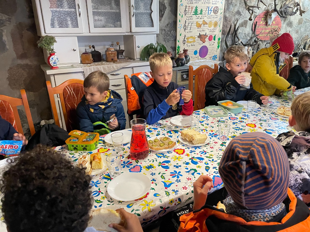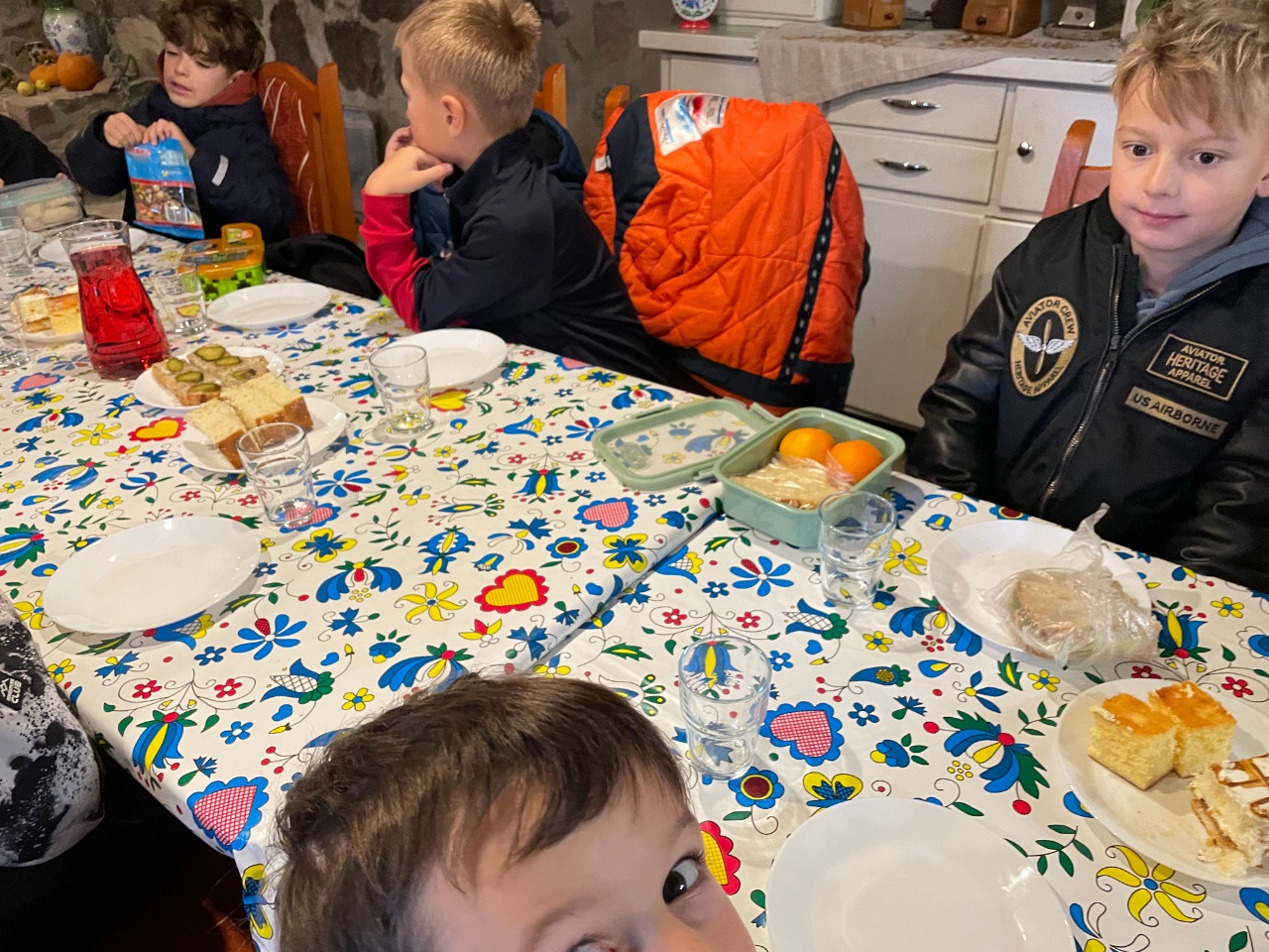 Po spacerze w lesie odbyło się spotkanie z panem leśnikiem, który opowiadał o zwierzętach i roślinach oraz o zasadach bezpiecznego zachowania w lesie. Nie zabrakło też słodkich i swojskich przysmaków – była wata cukrowa, pyszna pomidorowa zupka, domowa drożdżówka oraz swojski chleb ze smalcem - kaszubską nutellą.