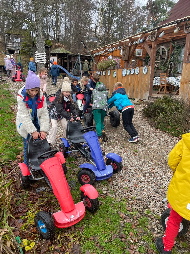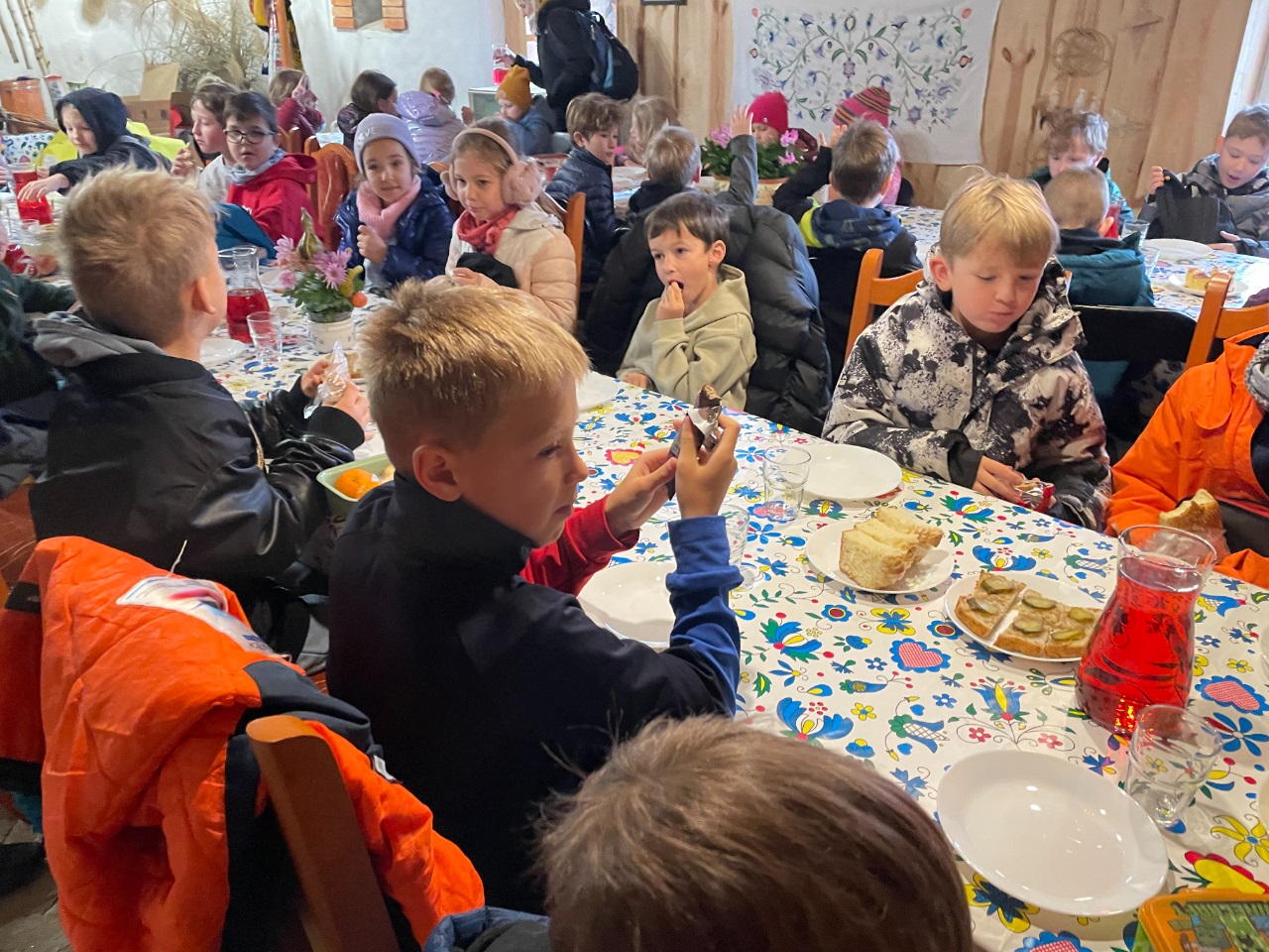 Uczniowie z klas 1D, 2C, 2E naszej szkoły wzięli udział w wyjeździe do zagrody edukacyjnej „Pod Lipą” w Kamienickim Młynie na Kaszubach. Na miejscu czekało na nich mnóstwo atrakcji na świeżym powietrzu oraz ciekawych zajęć związanych z życiem na wsi i przyrodą. Dzieci uczestniczyły w warsztatach edukacyjnych, miały okazję spróbować swoich sił w dojeniu „sztucznej krowy”, jeździły samochodzikami po trawie, korzystały z placu zabaw oraz zjeżdżały na tyrolce.
